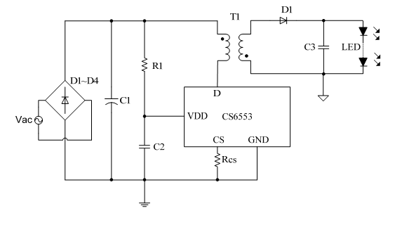 CS6553是一款離線式小功率AC/DC開關(guān)電源的高精度原邊反饋LED恒流驅(qū)動(dòng)電路,內(nèi)部集成650V高壓功率管,適應(yīng)于85~265Vac全范圍輸入反激式隔離LED恒流驅(qū)動(dòng)。通過原邊控制實(shí)現(xiàn)恒流,無需變壓器輔助繞組檢測(cè)和供電,即可實(shí)現(xiàn)高精度的LED恒流輸出,降低成本。