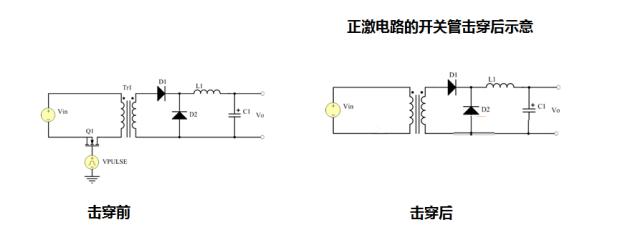 對于正激電路而言,同樣開關(guān)管擊穿短路,對負(fù)載而言,只是失去了供電的電源而斷電,不會(huì)對負(fù)載本身造成其它影響。