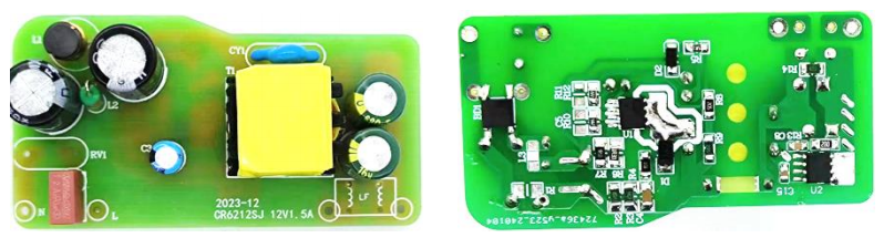 1、樣機(jī)PCBA尺寸:67*35*23mm,是一款全電壓實(shí)現(xiàn)12V1.5A輸出的電源適配器!
