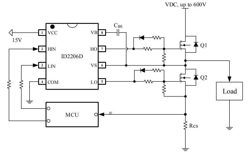 ID2206D 600V半橋柵極驅(qū)動(dòng)芯片,輸入功率電壓高達(dá) 600V,兼容 3.3V, 5V 邏輯工作電平,10-20V 寬范圍工作電壓范圍,具有防直通保護(hù)、欠壓保護(hù)等多種功能,典型應(yīng)用于高壓風(fēng)機(jī)和泵、步進(jìn)馬達(dá)等,可兼容代換ir2106驅(qū)動(dòng)。