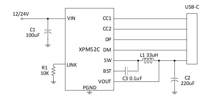 XPM52C PD快充降壓芯片具有自動識別 VIN 輸入電壓的功能,依據(jù)輸入電壓來調節(jié)輸出電壓!