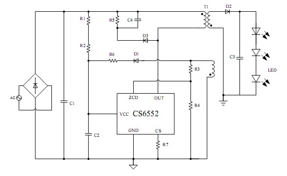 CS6552是一款離線式小功率AC/DC開關(guān)電源的高精度原邊反饋LED恒流驅(qū)動電路,內(nèi)部集成600V高壓功率管,適應(yīng)于85V-265VAC全范圍輸入反激式隔離LED恒流驅(qū)動,通過原邊控制實現(xiàn)恒流,無需光耦等次級反饋環(huán)路,即可實現(xiàn)高精度的LED恒流輸出,降低成本。CS6552內(nèi)部集成了多重保護功能來加強系統(tǒng)的穩(wěn)定性和可靠性,包括VCC欠壓保護,LED開路/短路保護,逐周期限流以及過溫保護等,所有保護均具有自動啟動功能。