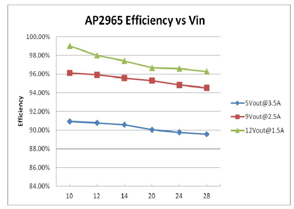 4、這四款高壓同步降壓芯片都有輸出線材壓降補償(Voltage Drop Compensation)功能,AP2963/5有獨立的引腳自由獨立設定輸出線材壓降補償量。