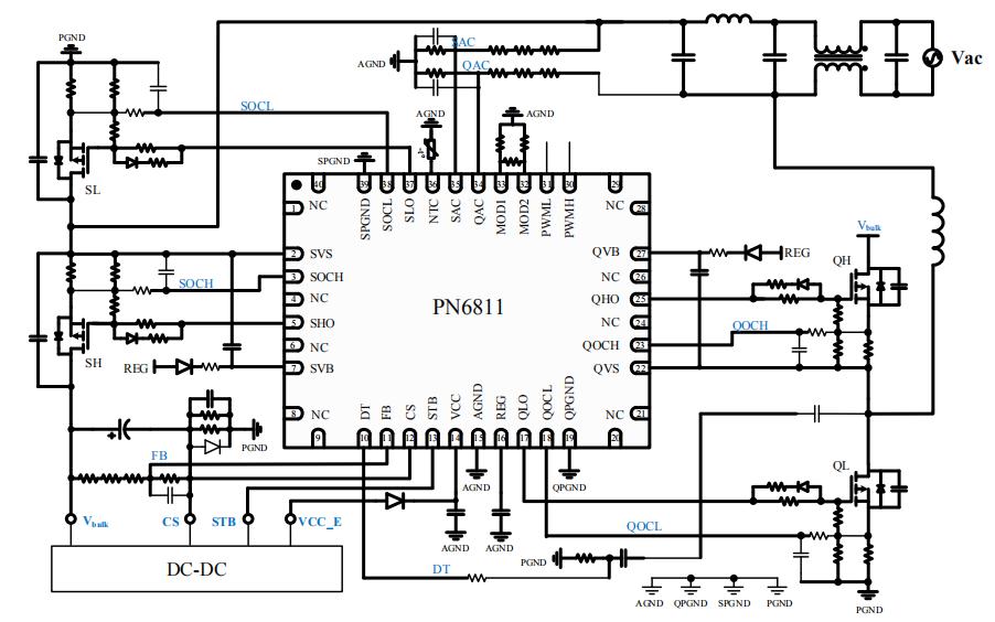 PN6811圖騰無橋pfc控制芯片典型電路圖