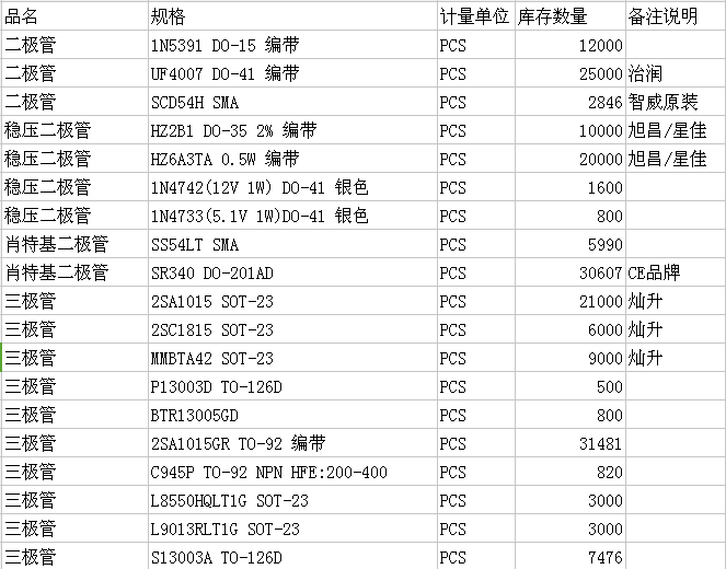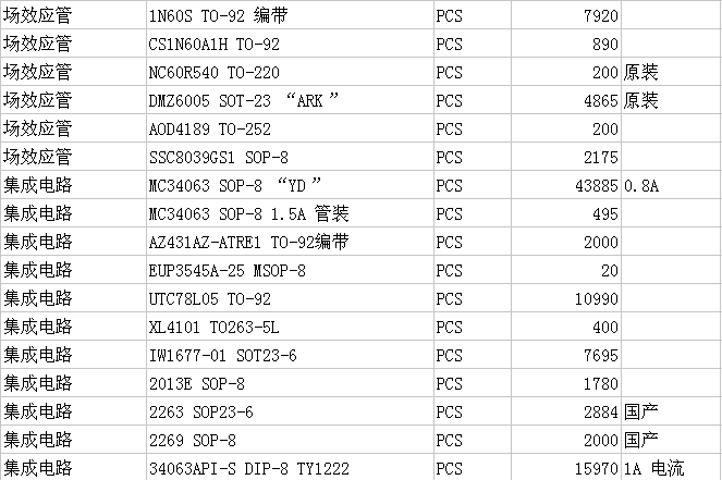 深圳驪微電子有一批集成電路IC,MOS管,二極管,三極管等庫存,現(xiàn)特價處理,全新原裝正品,具體型號規(guī)格如下: