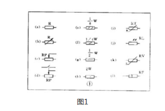 符號(hào)見(jiàn)圖1(k),用字符U表示電壓。它的文字符號(hào)是“RV”。這三種電阻器實(shí)際上都是半導(dǎo)體器件,但習(xí)慣上我們?nèi)园阉鼈儺?dāng)作電阻器。第4種特殊電阻器符號(hào)是表示新近出現(xiàn)的保險(xiǎn)電阻,它兼有電阻器和熔絲的作用。當(dāng)溫度超過(guò)500℃時(shí),電阻層迅速剝落熔斷,把電路切斷,能起到保護(hù)電路的作用。它的電阻值很小,目前在彩電中用得很多。它的圖形符號(hào)見(jiàn)圖1(1),文字符號(hào)是“RF”。