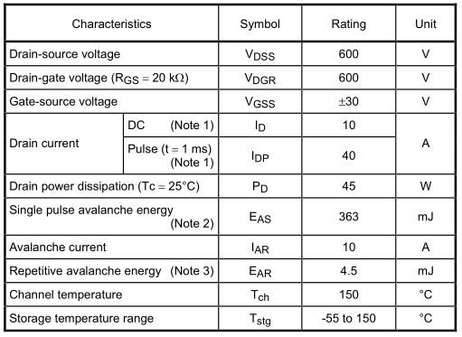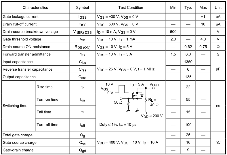 TK10A60D場(chǎng)效應(yīng)晶體管MOS管參數(shù):