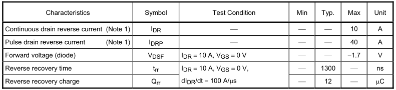 TK10A60D源漏評(píng)級(jí)和特性(Ta = = 25°C)